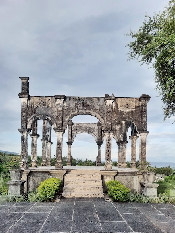 The palace features a stunning blend of Balinese and European architectural styles, set within beautifully landscaped gardens that include ponds, fountains, and intricate stone pathways. Visitors can stroll through the expansive grounds, taking in the serene atmosphere and picturesque views of the surrounding mountains and coastline.
